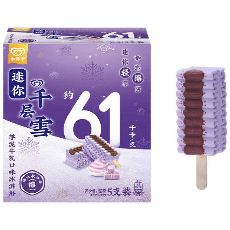 千層雪是和路雪旗下第三大冰淇淋品牌。層層疊疊的“千層”造型、高品質(zhì)乳源打造如“綿云”般,“融雪”般細(xì)膩口感,造就了千層雪的“綿綿幸福感,如雪一層層” 精致甜品基因