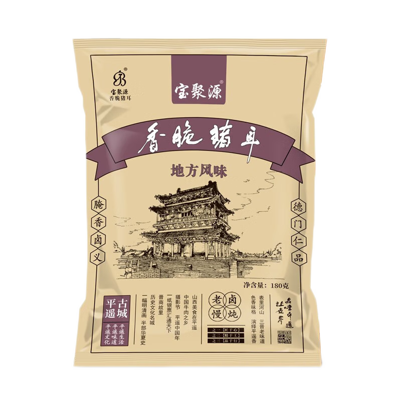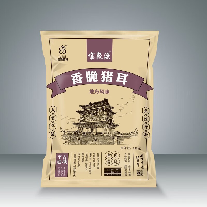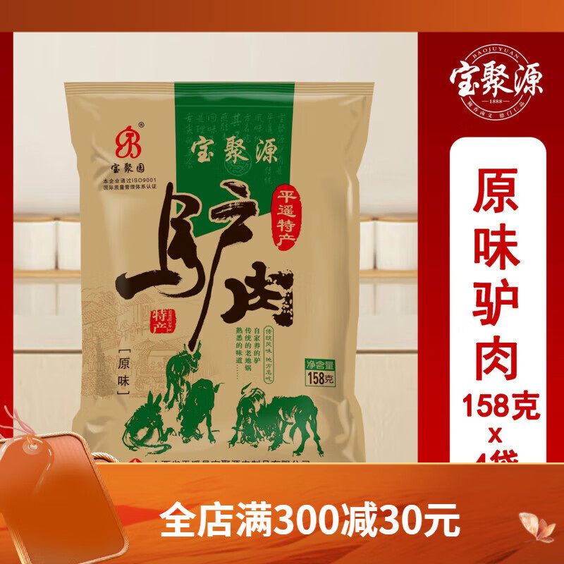 寶聚源創(chuàng)建于1888年(清光緒十四年),創(chuàng)始人霍聚源生于1863年,15歲師從于平遙最大的牛肉鋪隆盛旺韓來寶師傅門下學徒,于光緒十四年在平遙縣城內東大街 76 號開設聚源牛肉鋪。前店后坊鹵煮、加工、銷售平遙牛肉。光緒二十四年,晉商大財東、蔚長厚東家毛履泰賜號“寶聚源”,并以“善以為寶聚太和,端本正源出上品”慰勉!后有銀行家范椿年賜匾“德門仁品”使得寶聚源牛肉在平遙、文水、祁縣、太谷等晉商源地名聲鵲起、遠近聞名!寶聚源以鹵煮平遙牛肉而得名,后又發(fā)展到鹵煮五香牛肉、醬牛肉、牛蹄筋、牛肚、驢肉等產品,改革開放后寶聚源第四代傳承人霍騠在持續(xù)經營的過程中,還開發(fā)了豬蹄、豬肘、燒雞等系列產品,形成了四大系列,70余種不同規(guī)格的產品,呈現(xiàn)出“品類多、品質優(yōu)、系列化”發(fā)展的特點。其產品色正、味正、形正、品正,以“善咸香,滋味長”的特點,產品輻射山西、北京、上海、西安等全國二十多個省市與地區(qū),受到了社會各界的眾多好評與肯定。